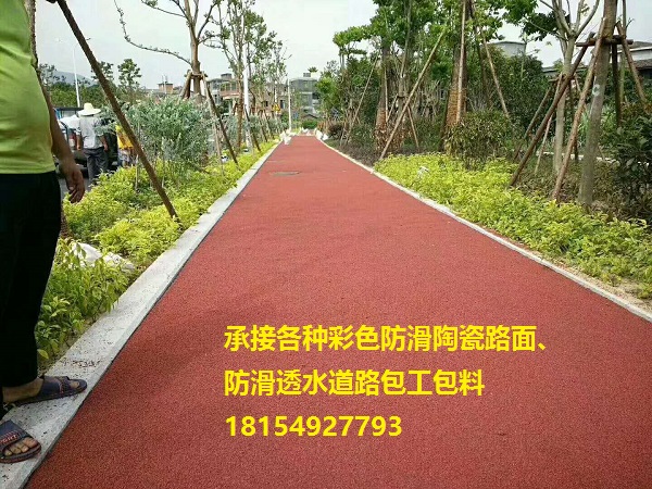 (3)著色 透水混凝土:在素色透水混凝土面上噴涂高耐候性、高耐磨性丙烯酸類。 可根據(jù)實際要求選擇單色或多色噴涂。