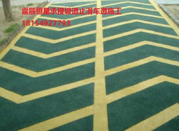 無震動止滑坡道是一種多角性硬度極高之礦物彩砂骨料與環(huán)氧樹脂基料(聚氨酯)組成,采用特種現(xiàn)場工藝施工而成。施工完成后的坡道,是一個(gè)耐磨性好,構(gòu)造深度大,行車無震動的涂層系統(tǒng),達(dá)到行車的舒適和防滑效果。